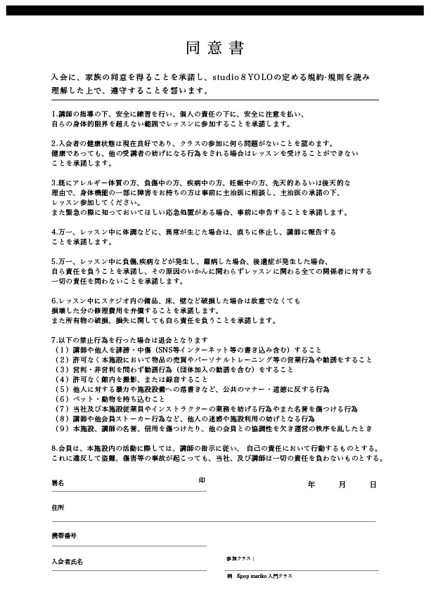 受講クラス、お名前、電話番号、住所、を入れて登録完了)